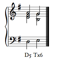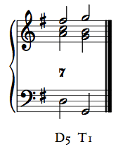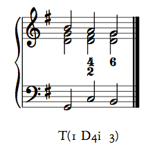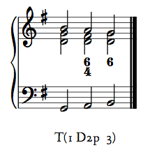 A voice exchange occurs when the melody and bass lines exchange pitches over the course of a simple contrapuntal prolongation. For example, in the progression T1 D2 T3, the bass begins on do and ends on mi. In a voice exchange, the melody would reverse this, starting on mi and ending on do. This common pattern can use a V6/4, V4/3, or a VII6/3 chord for D2: