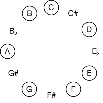 Octatonic – An eight-pitch-class scale that alternates i1 and i2 (semitones and whole-tones).