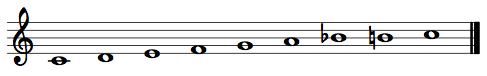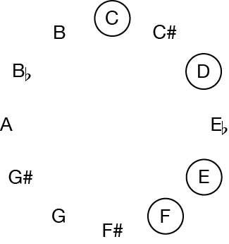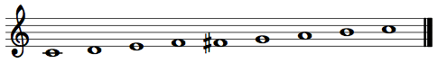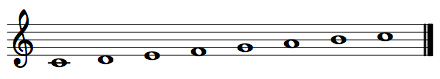 and mark all the pitch classes involved in the fragment. For example, here is a C-major scale: