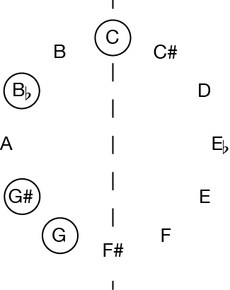When the above set is inverted around the axis C/F-sharp, it becomes the following set: