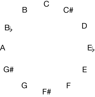 Atonal composers often begin with highly organized set of pitch classes, and then deploy the pitch classes in a wide variety of registers. Thus, it is helpful to eliminate register as a factor in order to find which motives, chords, and fragments belong in the same category. To do so, take a clock face with the twelve pitch-classes (spelling does not matter)