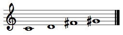 Whole-tone scale – A six-pitch-class scale made up of successive whole tones, prime form: (02468T).