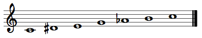 Dual-diatonic – An eight-pitch-class scale formed by the union of two diatonic collections separated by fifth—for example C major and G major: C – D – E – F – F# – G – A – B. It contains two diatonic scales, two Z-cells, and two Y-cells. It was used primarily by Bartók.