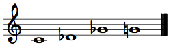 X-cell – The chromatic tetrachord, or a four-pitch-class chromatic cluster, prime form: (0123).